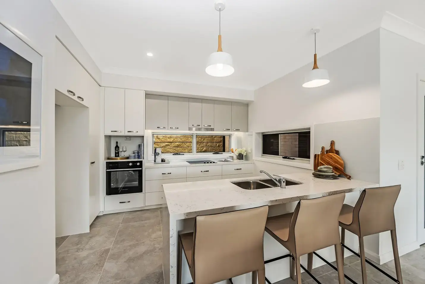 The sought-after open-plan layout is perfect for entertaining, boasting two alfresco areas that can be enclosed for year-round use. The backyard is pet-friendly, and the modern kitchen impresses with exquisite finishes.