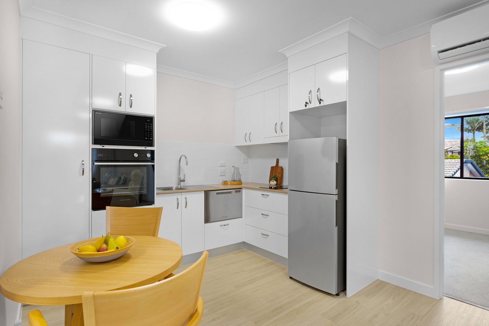 Apartment 83 has been recently refurbished and sits in a quiet location on the top floor. This unit has beautiful garden views, a modern white kitchen, including an oven and dishdrawer, and an additional toilet. It is air-conditioned with ceiling fans for year-round comfort in a peaceful garden setting.