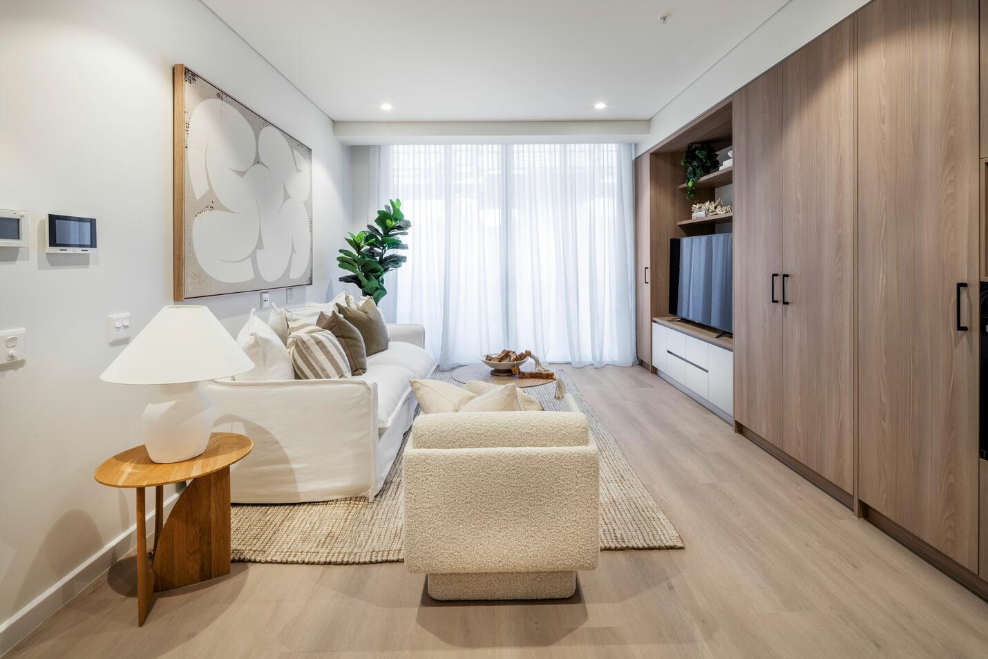 Located on the ground floor for easy access, enjoy a warm entrance into an open-plan living space. The modern, full-size kitchen flows into a spacious lounge & dining area then onto a private landscaped courtyard, perfect for entertaining. The master bedroom is a tranquil retreat with a built-in wardrobe. A luxe bathroom and separate laundry complete the apartment.