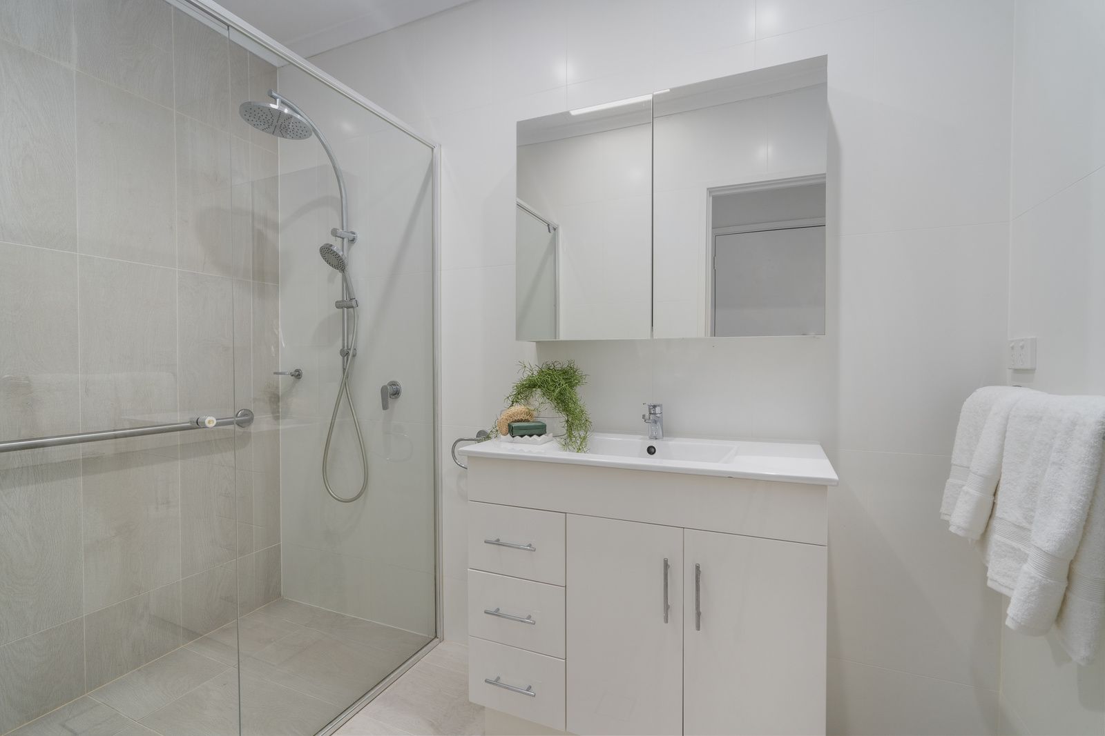 - Modern floor-to-ceiling tiled bathroom