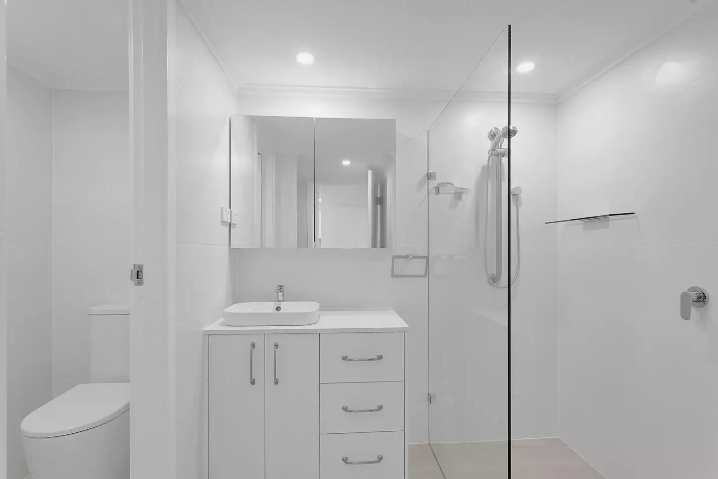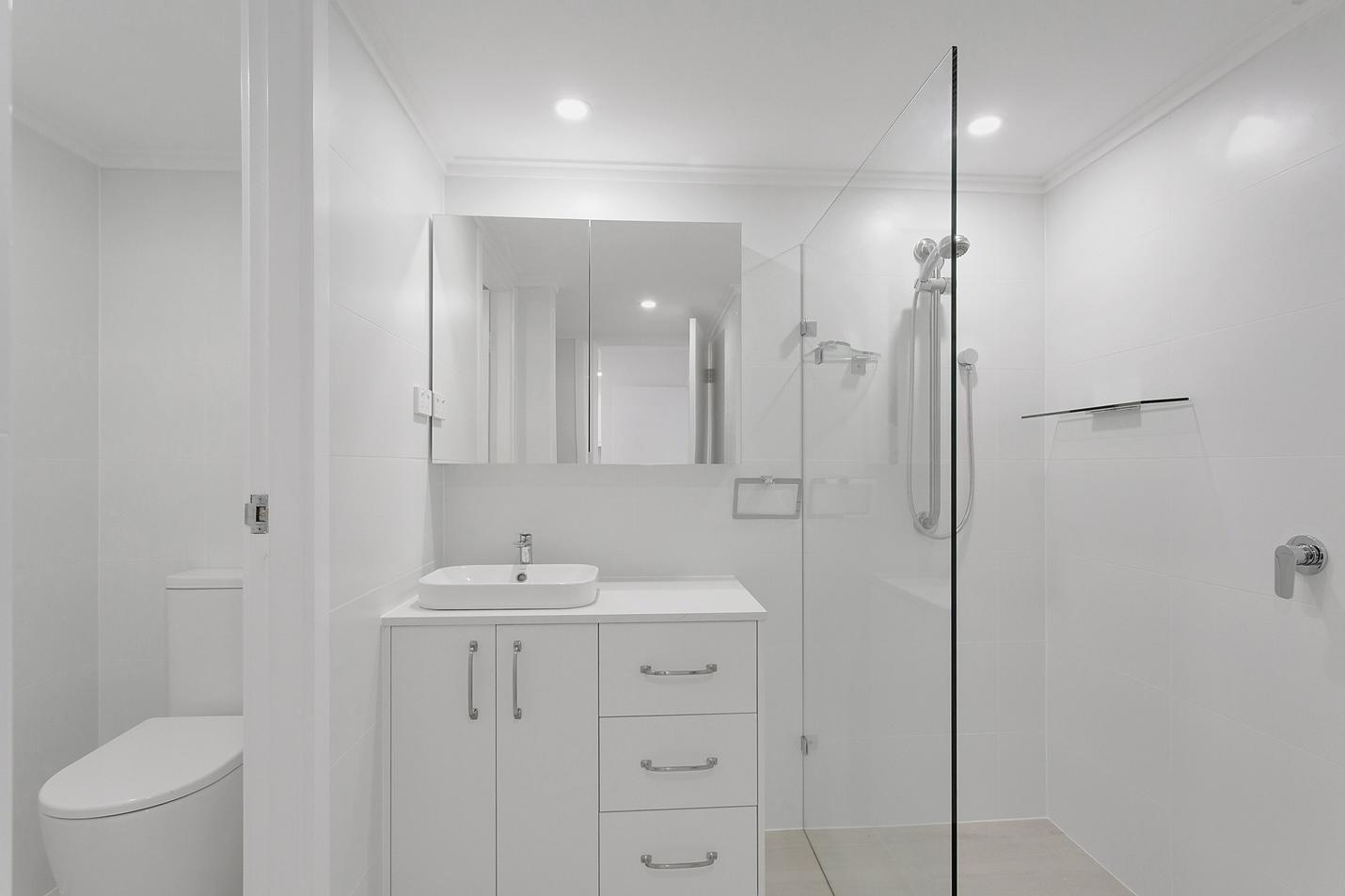 - Modern spacious bathroom with laundry