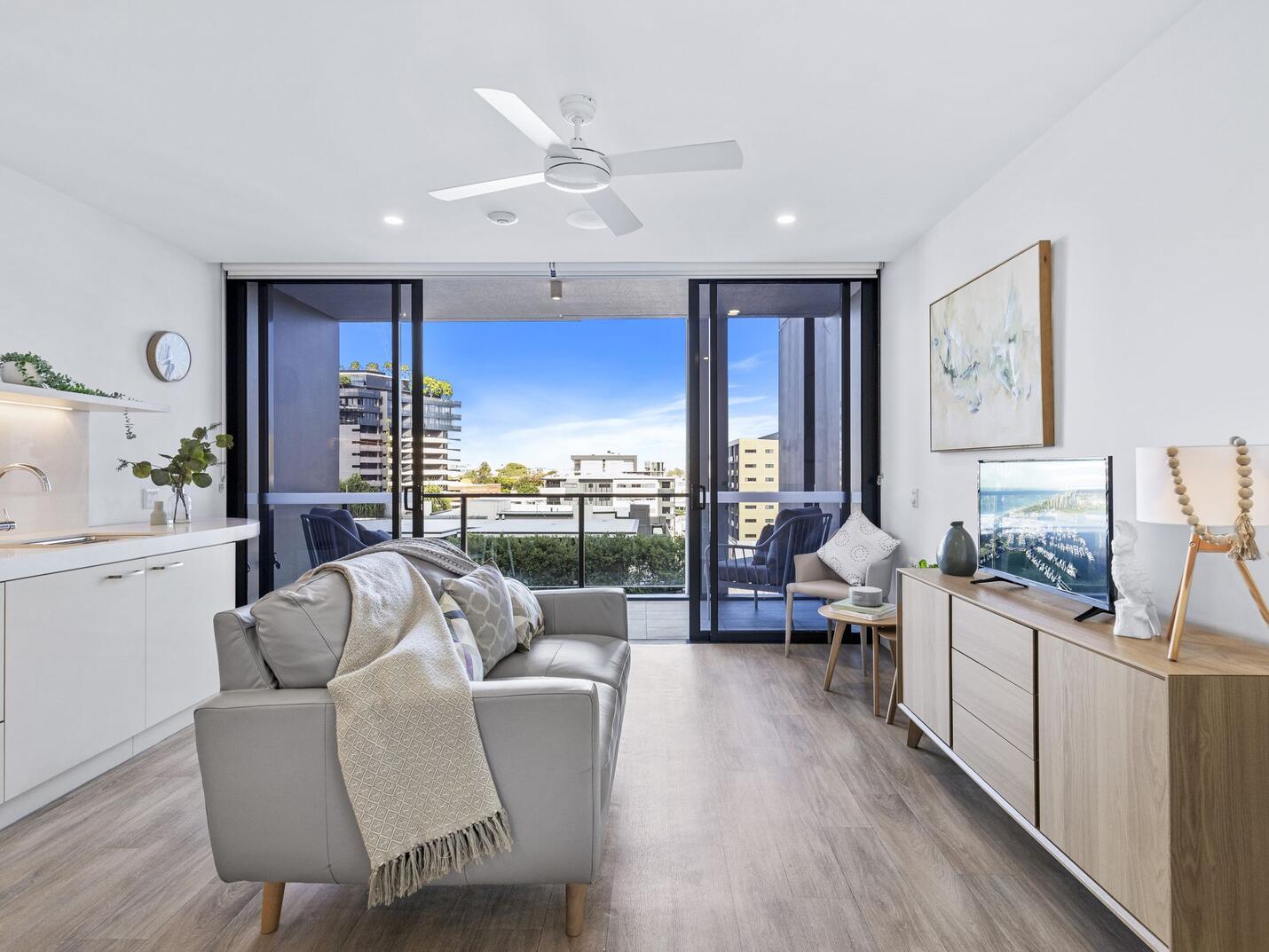 Elevated above the lively Gasworks precinct, award-winning The Newstead Residences blends modern, low-maintenance living with inner-city convenience in one vibrant destination. Enjoy easy access to nearby amenities, an extensive range of community facilities and outdoor spaces spanning nearly an acre, or retreat to the comfort and privacy of your apartment, a welcoming space designed for your lifestyle.