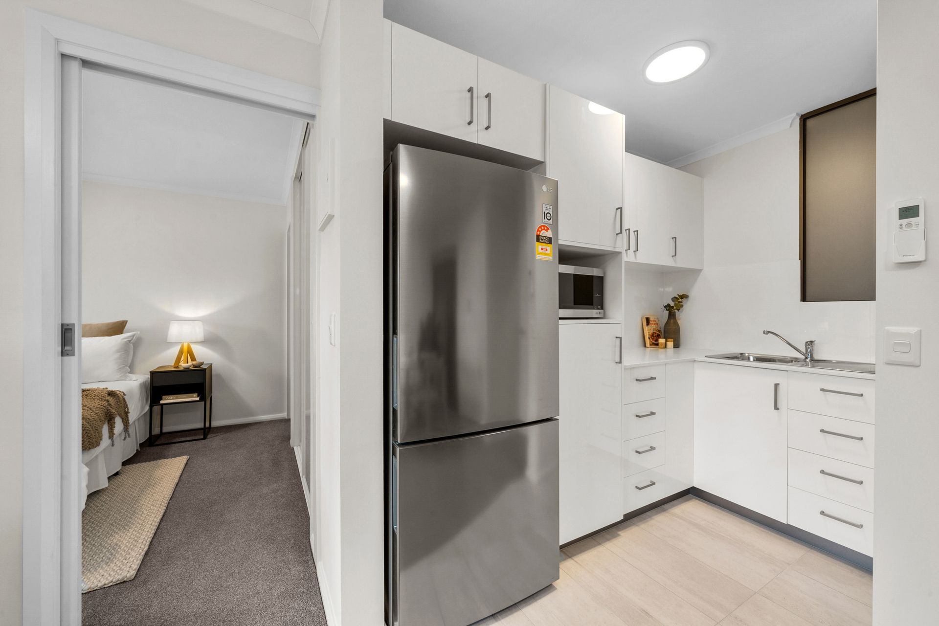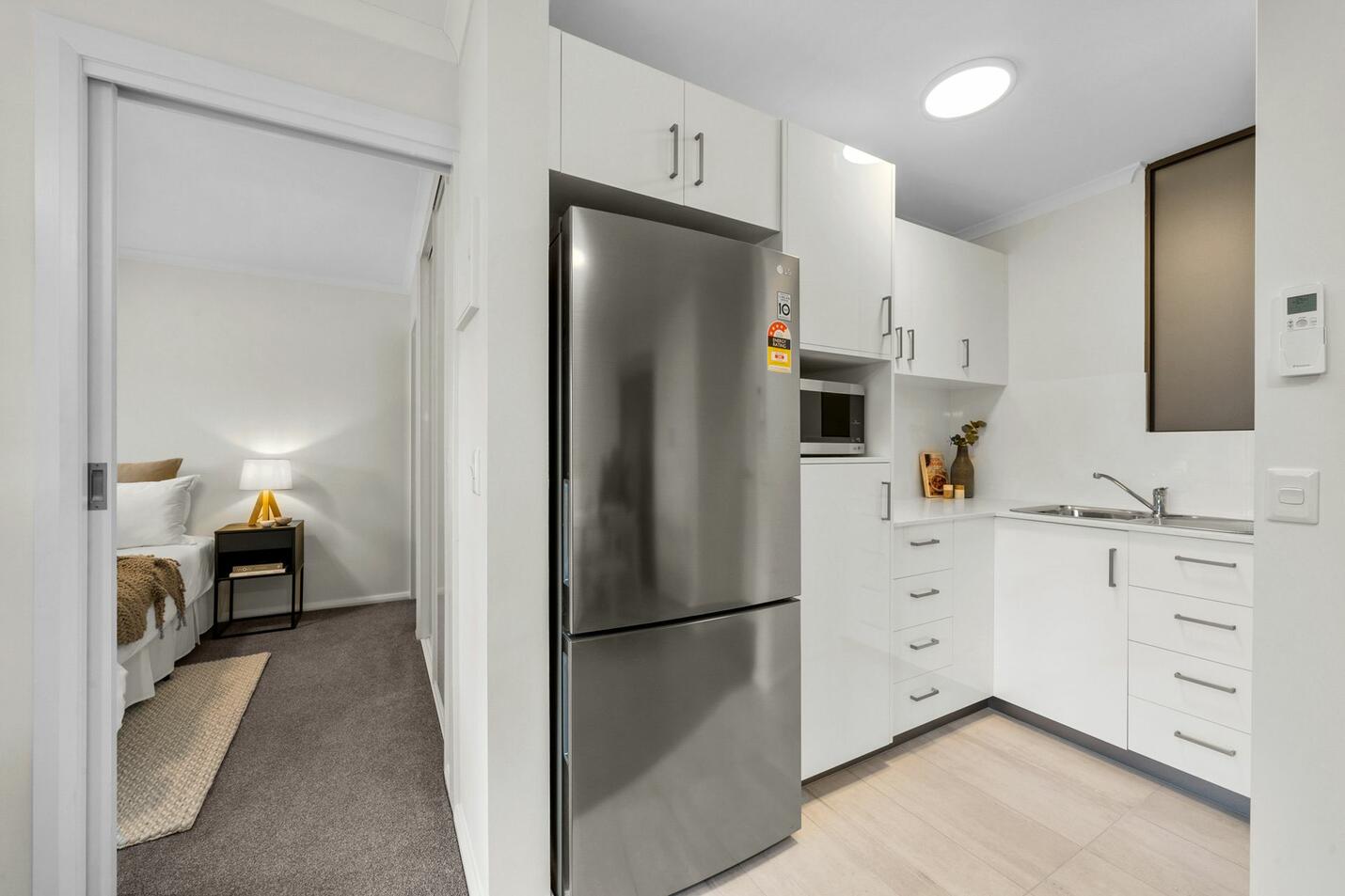 This apartment features an open-plan living/dining space which opens onto a small patio, a kitchenette equipped with a bottom-mount fridge & microwave, and a spacious bedroom with a combined bathroom & laundry. It also includes reverse-cycle heating. Enjoy the daily continental breakfast, two-course lunch, and three-course light dinner, along with weekly apartment cleaning & linen laundry.