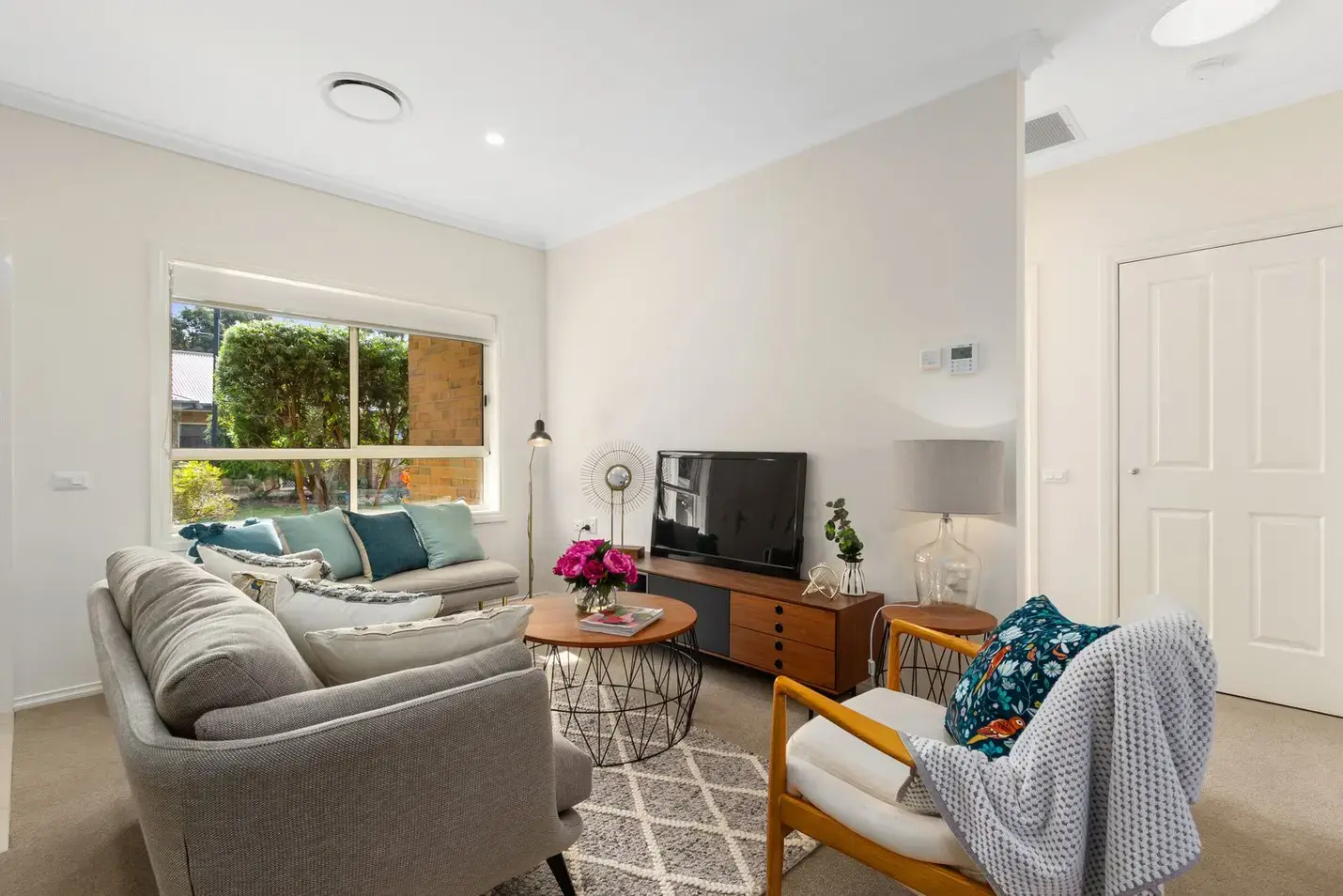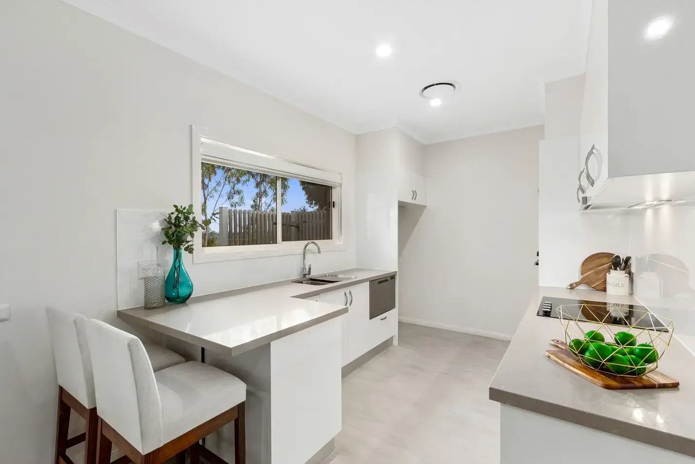 This villa features two spacious bedrooms, with the master suite showcasing its own ensuite bathroom and a walk-in robe. The open-plan living area flows seamlessly onto a covered patio, perfect for entertaining friends and family.