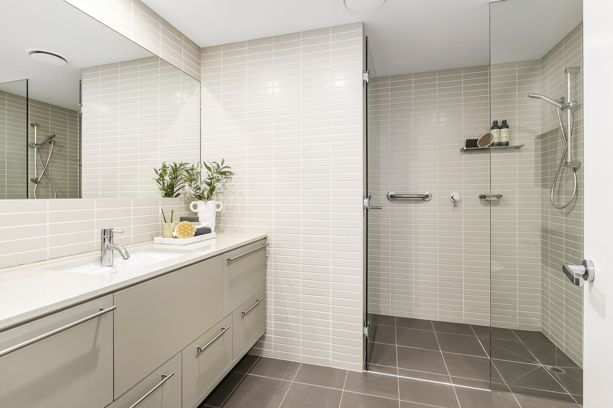 - Stone benchtops throughout